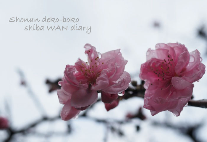 いつから降り出したんだろう?春の冷たい雨は、朝まで残っていました。庭の花桃も咲き始めています。そして今日の“すりすり”。貫太、そんなに嫌そうで···